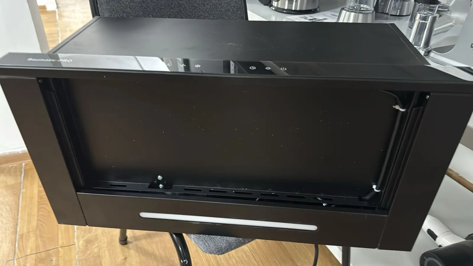 Черная модель Dessus DH-903B имеет широкую панель управления и светодиодное освещение. Устройство обеспечивает быстрый обмен воздуха в кухонном пространстве.