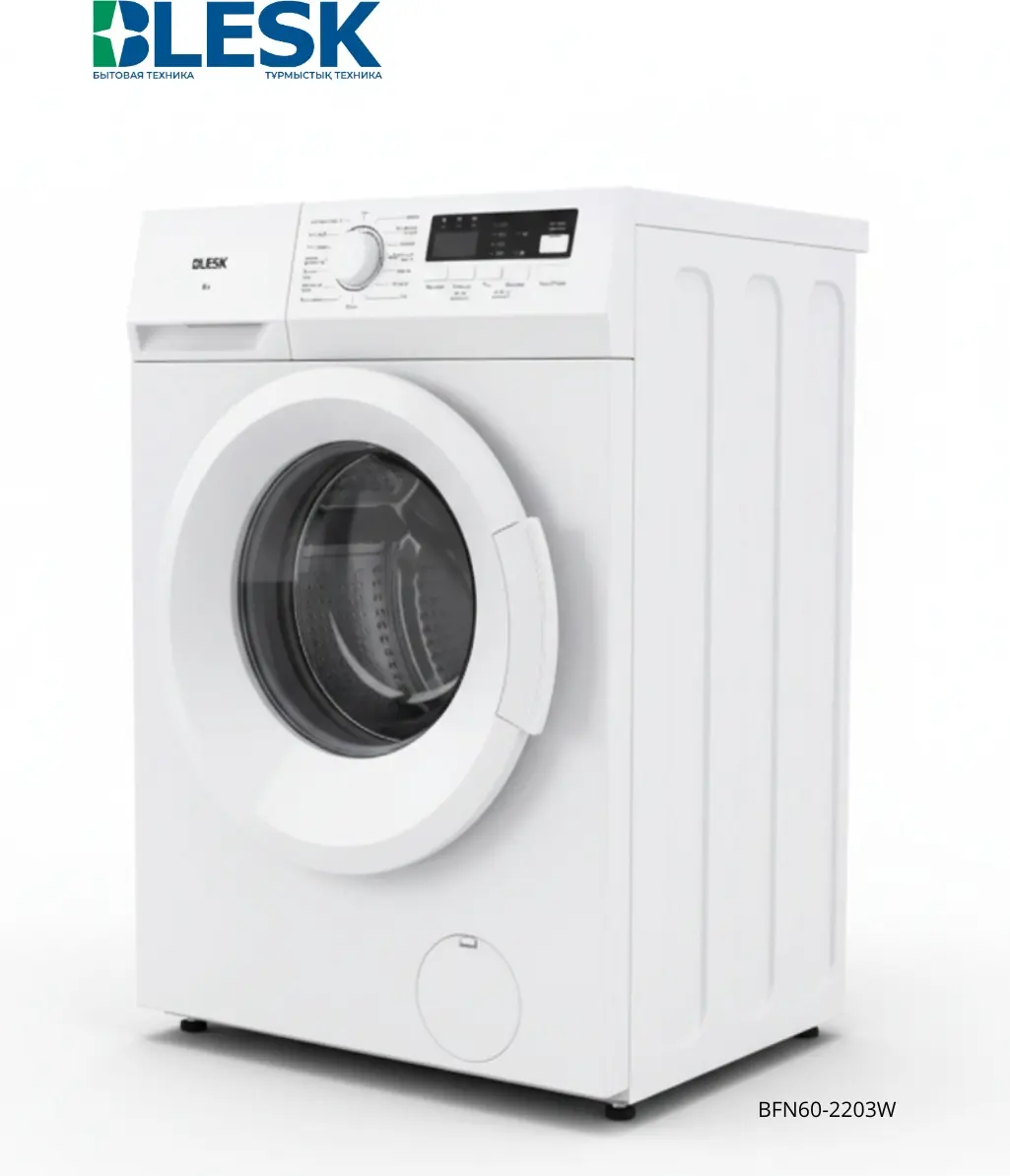Стиральная машина Blesk BFN60-2203W в классическом белом цвете — практичное решение для ежедневной стирки. Модель сочетает надежную работу, удобное управление и современный дизайн, который легко впишется в интерьер ванной комнаты или кухни.